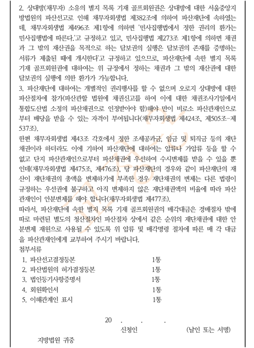 ㈐ 다만, 상법상의 자조매각에 있어서는 매각대금의 전부 또는 일부를 매매대금 등에 충당함을 허용하고 있으므로(예컨대 상법 제67조 제3항, 제109조, 제113조, 제123조, 제145조 등), 실질적으로는 신청인은 자기의 채권에 관하여 우선변제를 받는 결과가 된다.