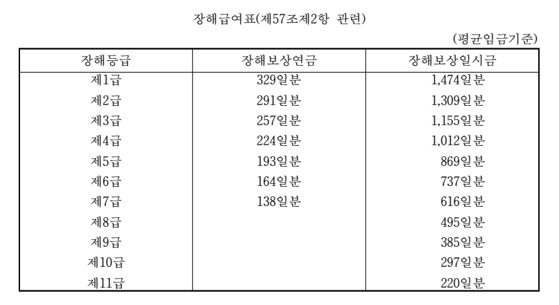 가. 산업재해보상보험법 제57조 제2항 별표 2