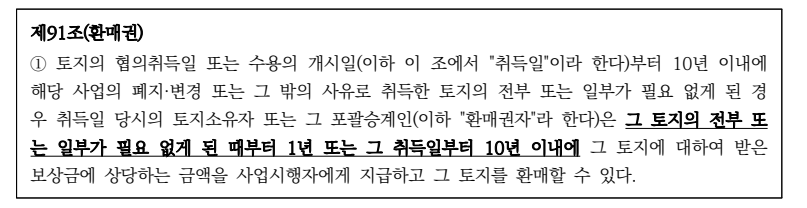 ● 구 토지보상법 제91조제91조(환매권)