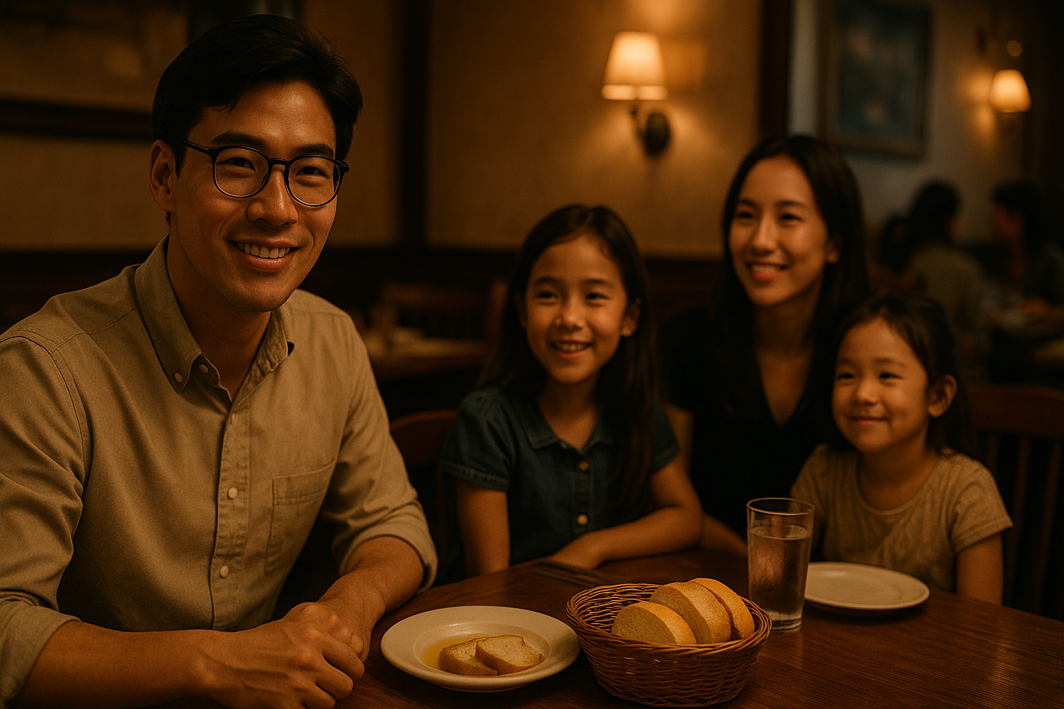 이윽고, 어두운 막을 열고 등장한 조연 배우처럼 웨이터가 빵이 담긴 바구니와 기름에 간장이 섞인듯한 담긴 종지를 우리 앞에 내려 놓았다.