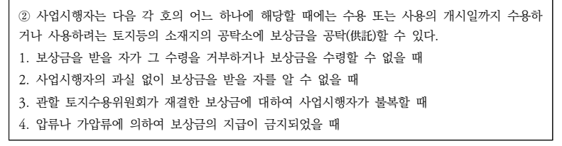 한편 공익사업을 위한 토지 등의 취득 및 보상에 관한 법률(이하 ‘토지보상법’이라 한다) 제40조 제1항, 제2항은 토지 등의 수용 또는 사용에 관하여 ‘사업시행자는 관할 토지수용위원회가 재결로써 결정한 수용 또는 사용의 개시일까지 재결에서 정한 보상금을 지급하거나 공탁하여야 한다.’는 취지로 규정하고 있으나, 광업법은 광업권자 또는 조광권자에 의한 토지 사용⋅수용에 관하여 광업법에 규정된 것 외에 토지보상법을 적용한다고 규정하였을 뿐(제73조 제1항), 광업법 제34조 제3항에서 정한 손실보상금에 관하여 토지보상법 제40조 제1항, 제2항 등을 준용한다는 규정은 두고 있지 않다.