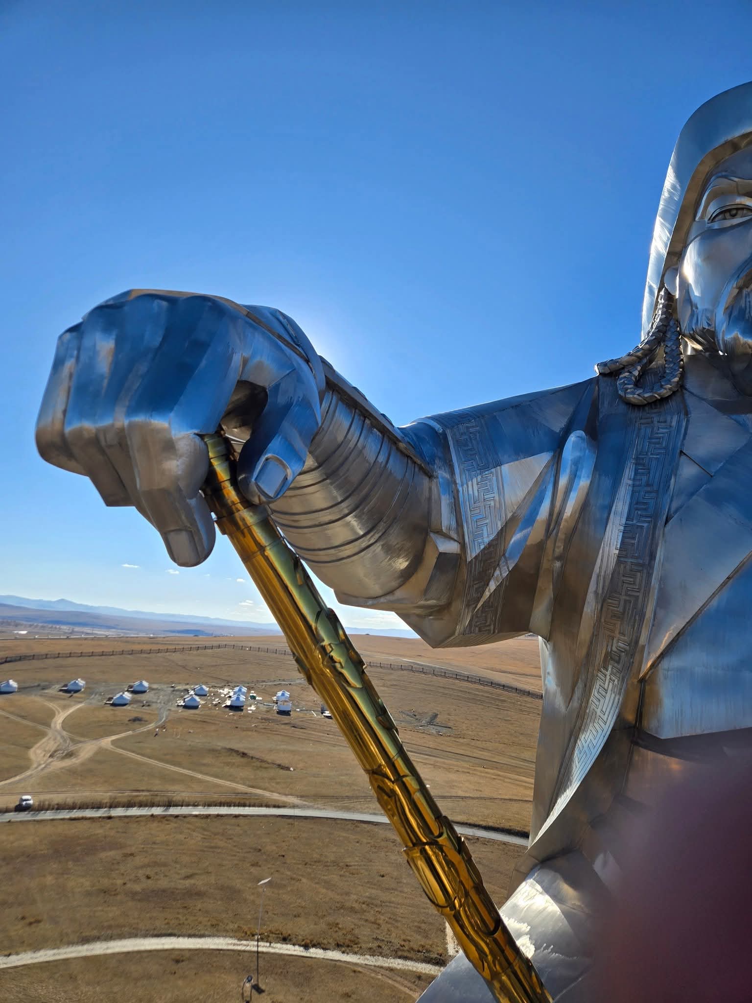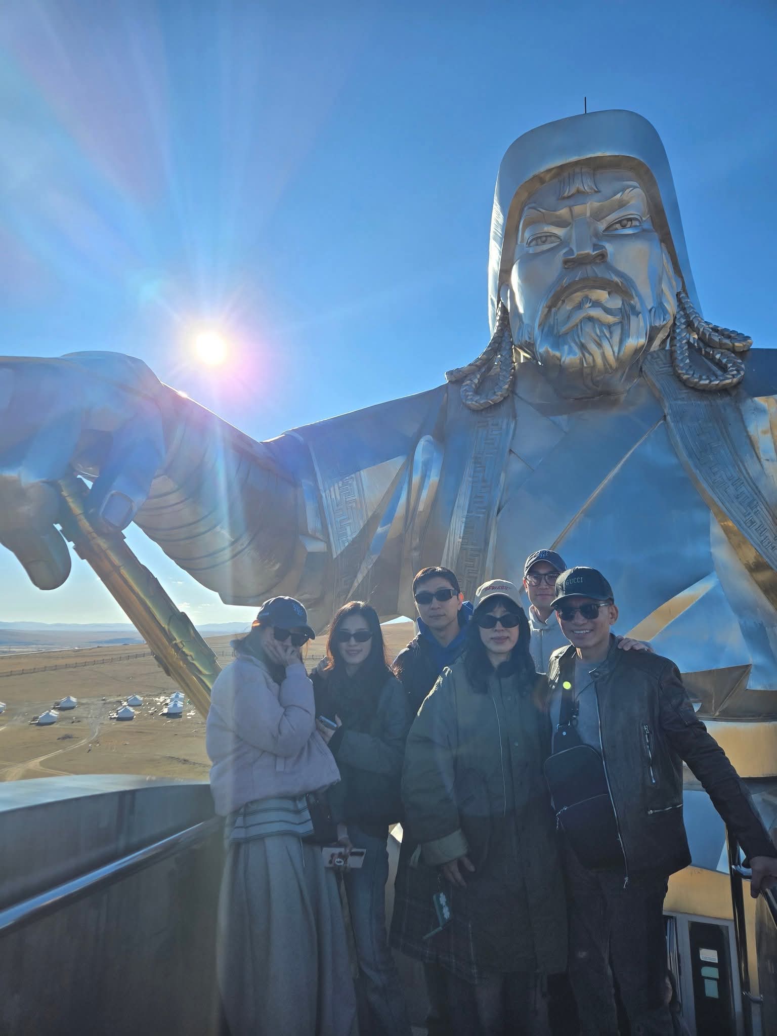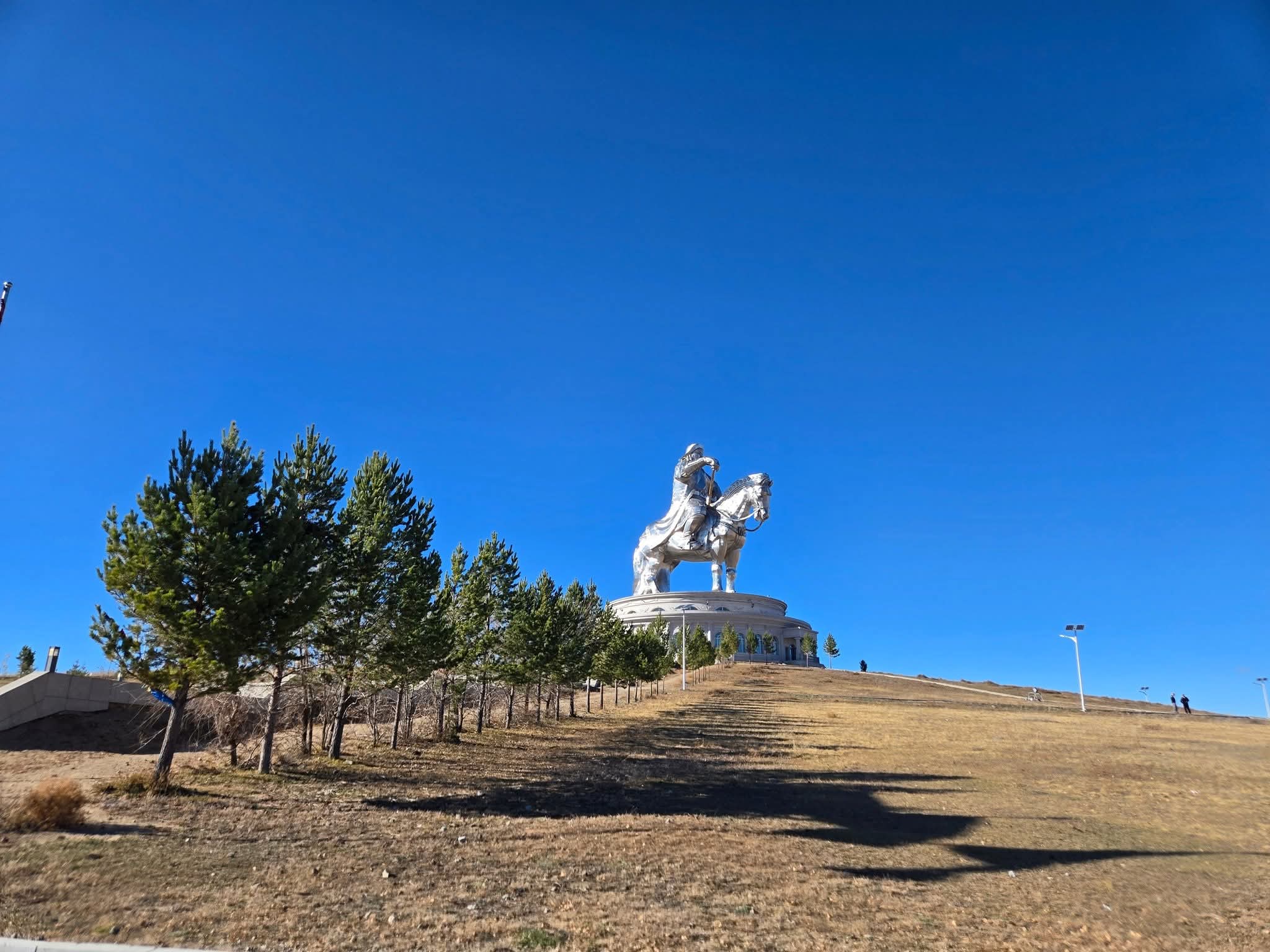 햇살을 받아 반짝이며, 초원 위에서 서서히 모습을 드러내는 징기스칸 기마상은 마치 금방이라도 말을 몰아 달려올 듯했다.