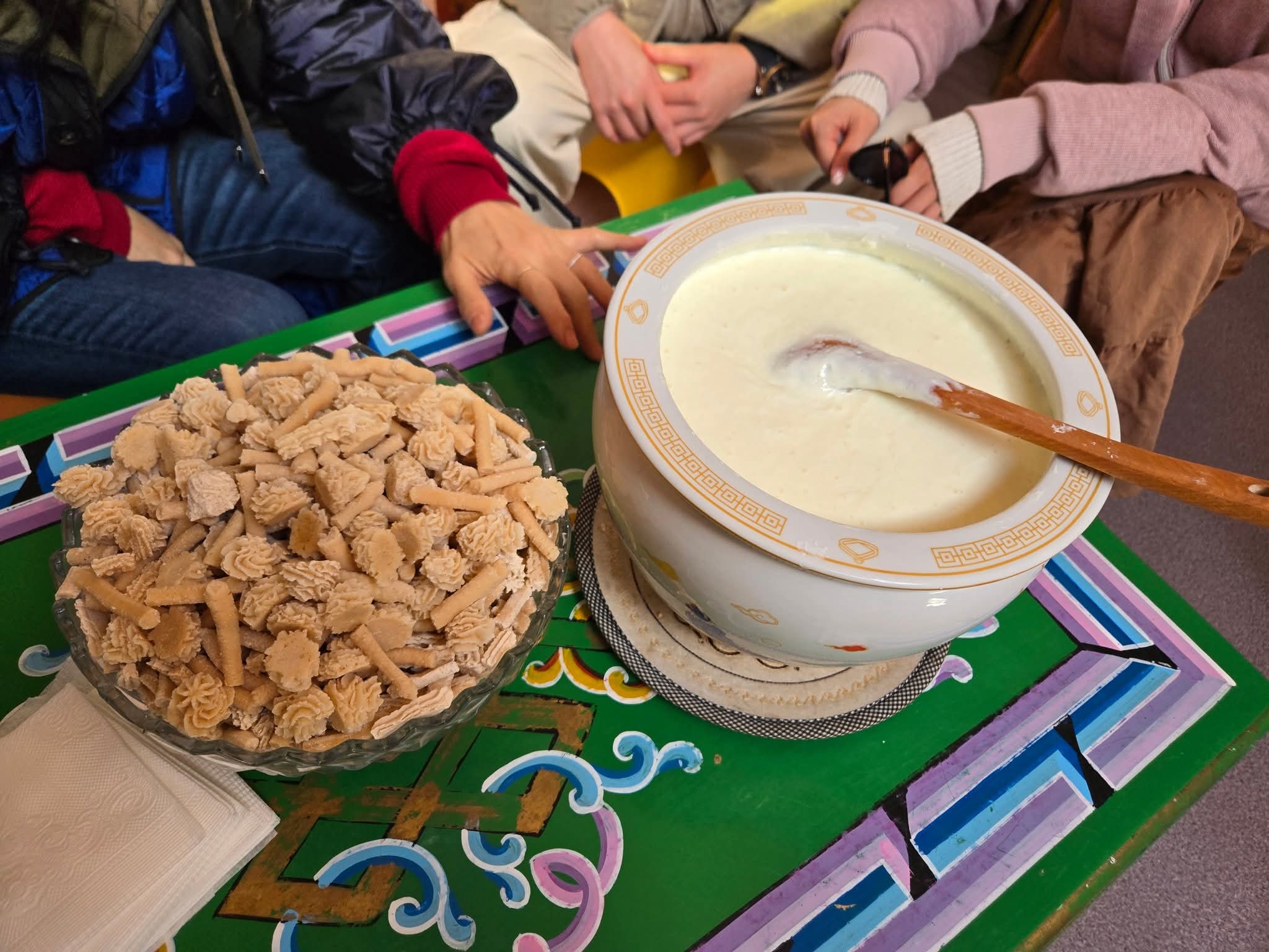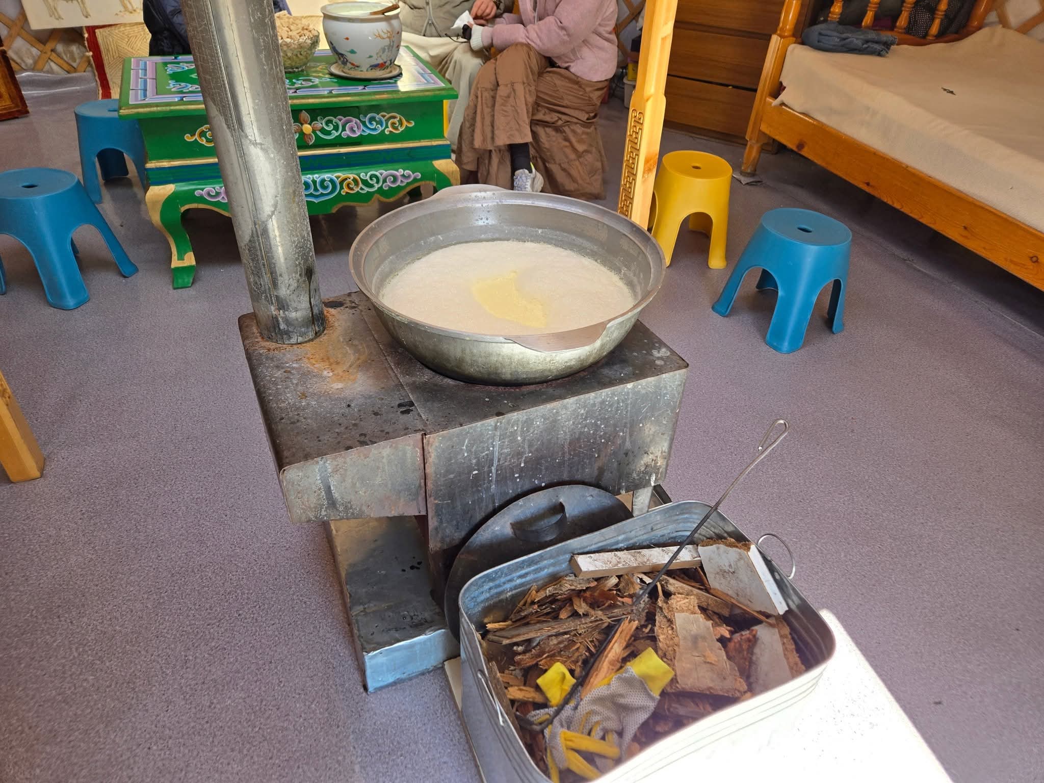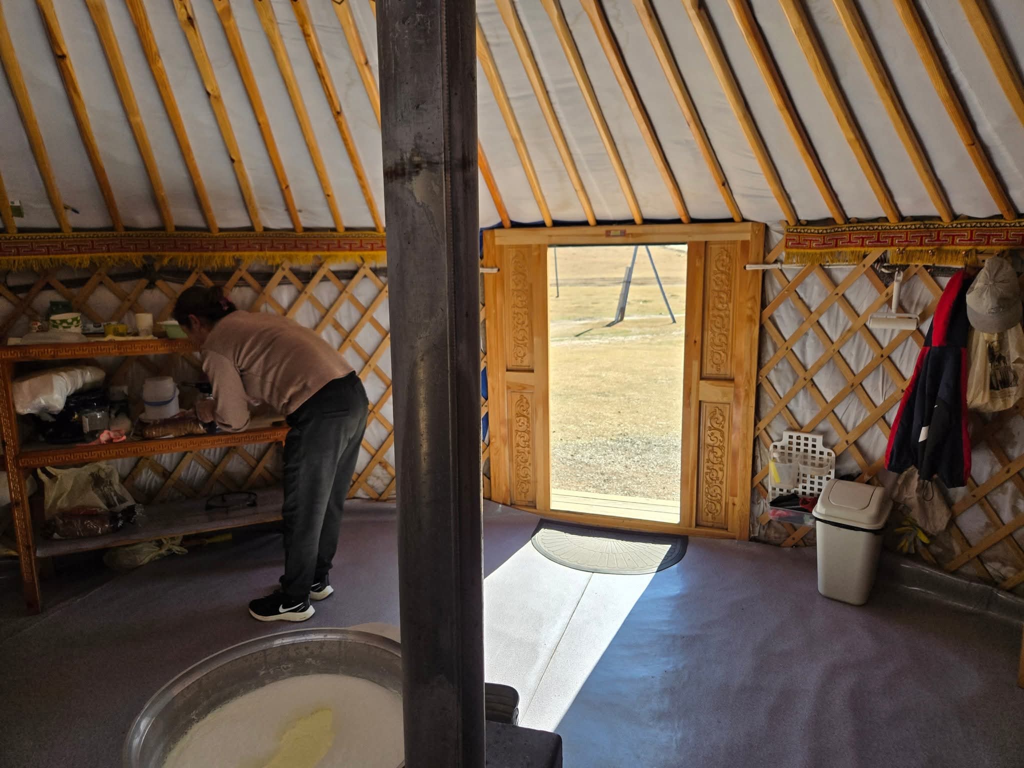 게르의 열자, 바깥 초원의 흙먼지 냄새는 이내 사라지고 따뜻한 우유 향이 아늑하게 감싸 안았다