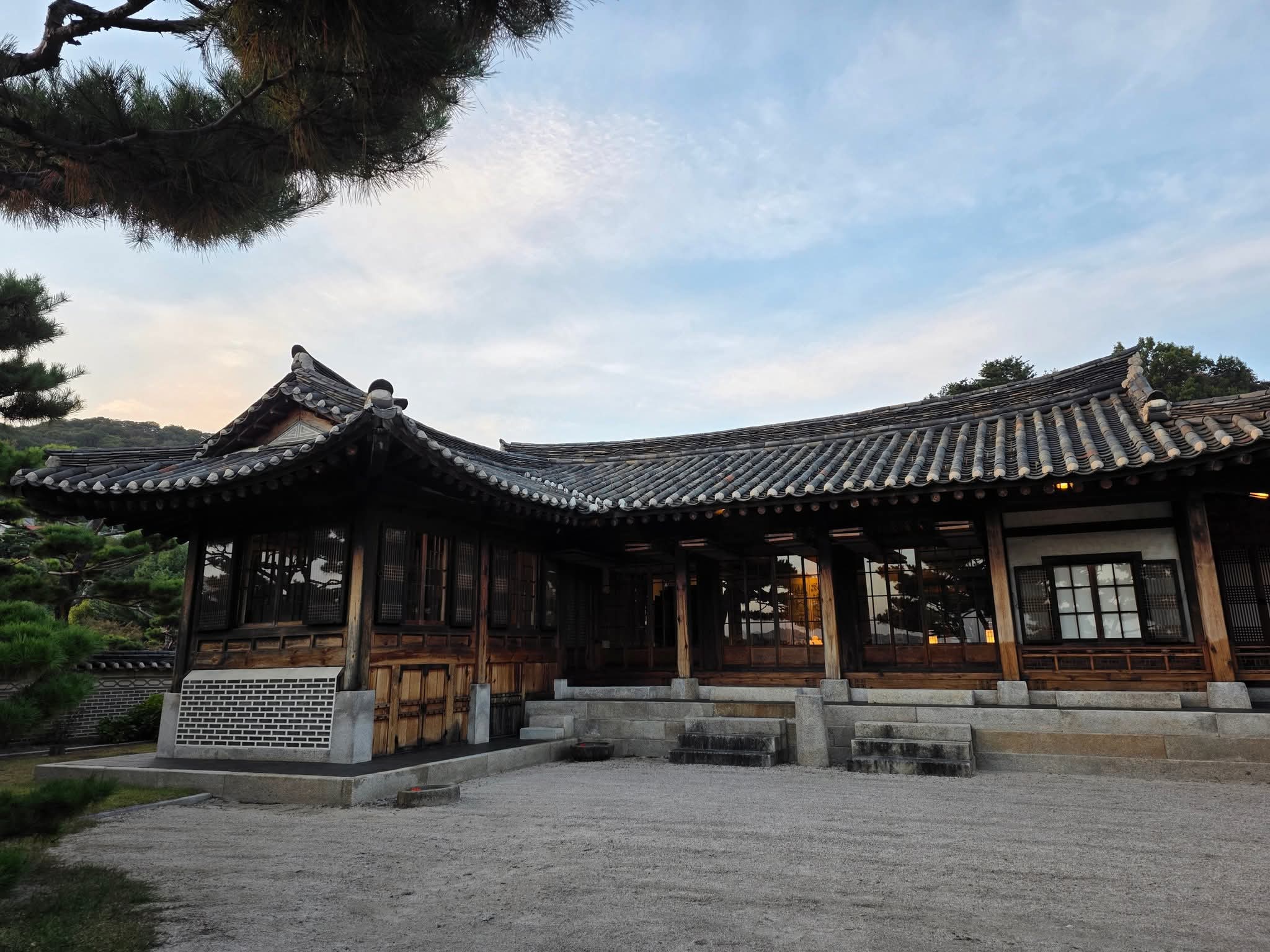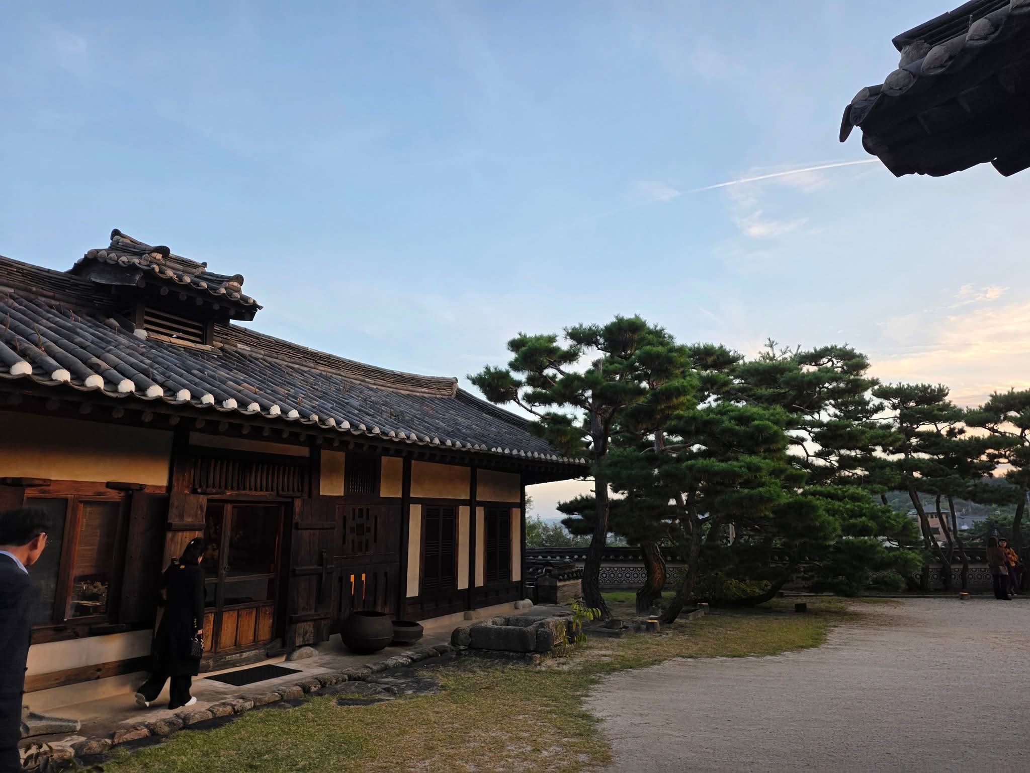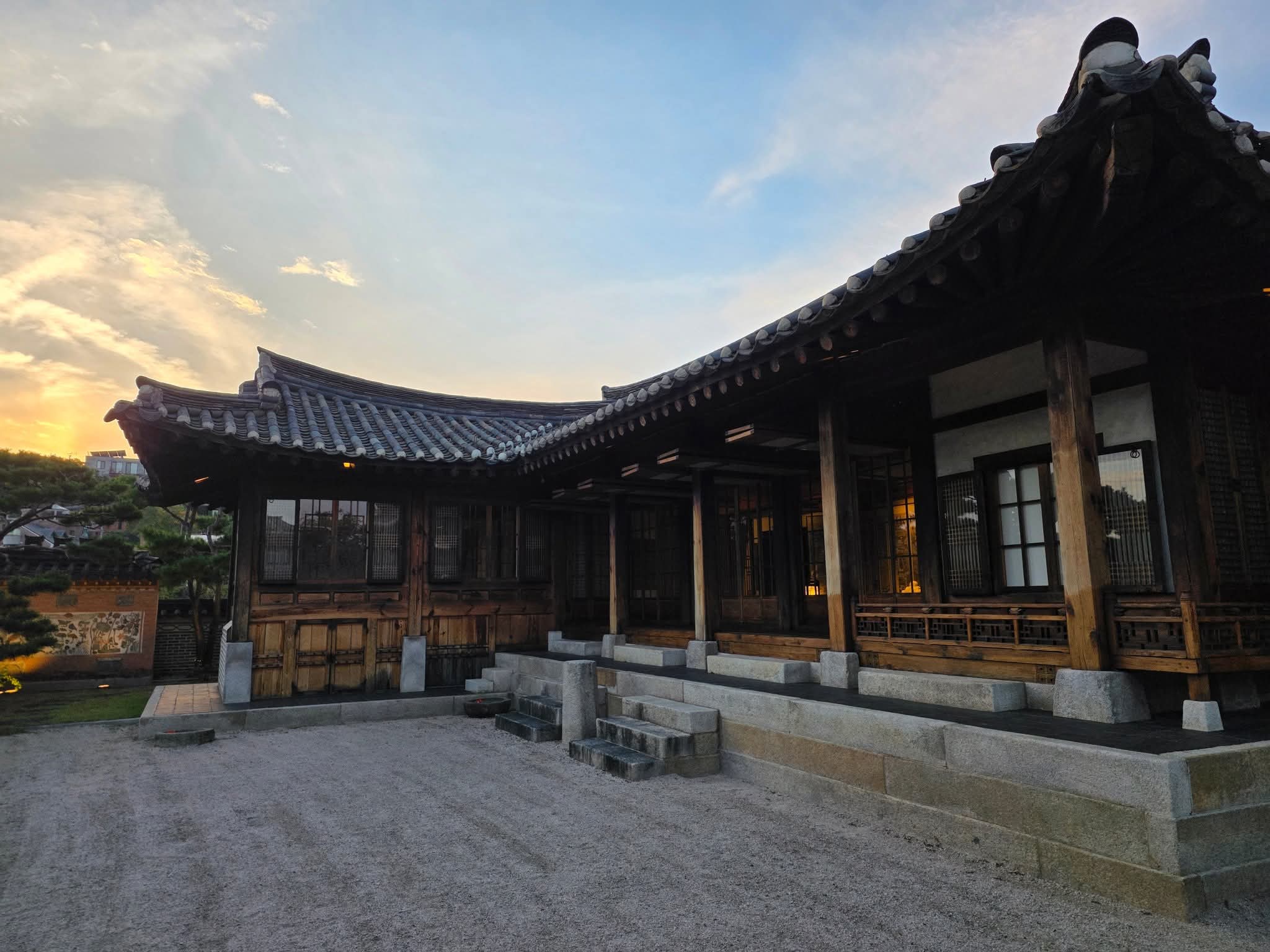 한옥 지붕 위로 스며드는 마지막 빛이 유리창을 타고 흘러내렸습니다.