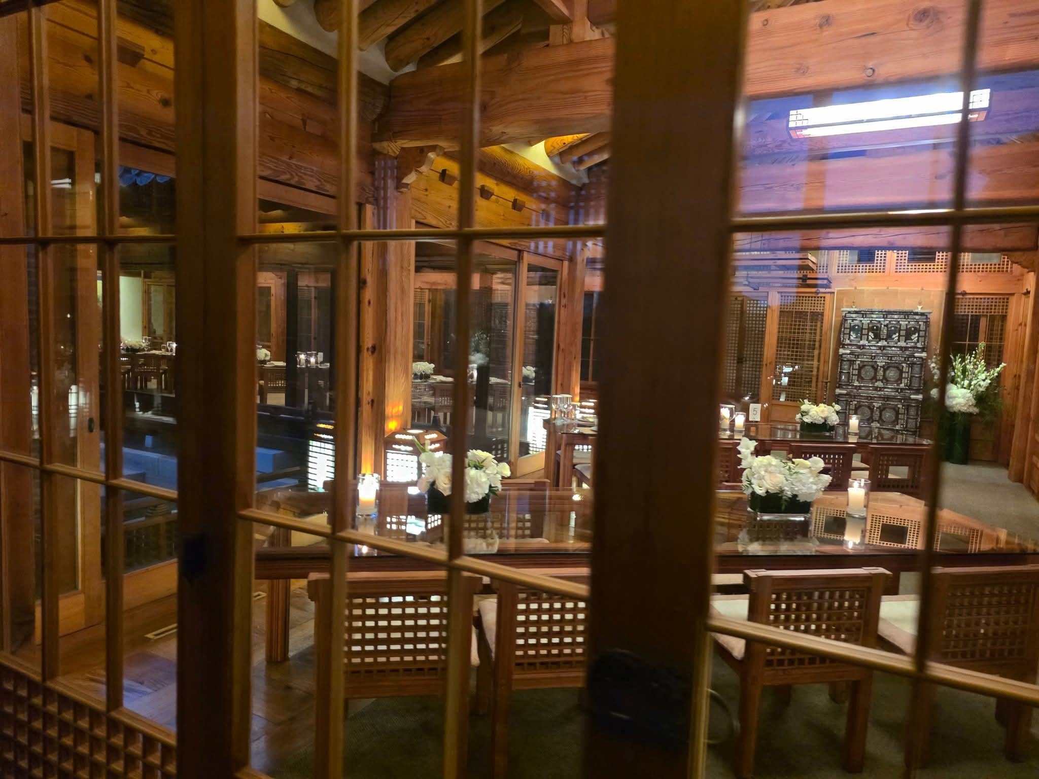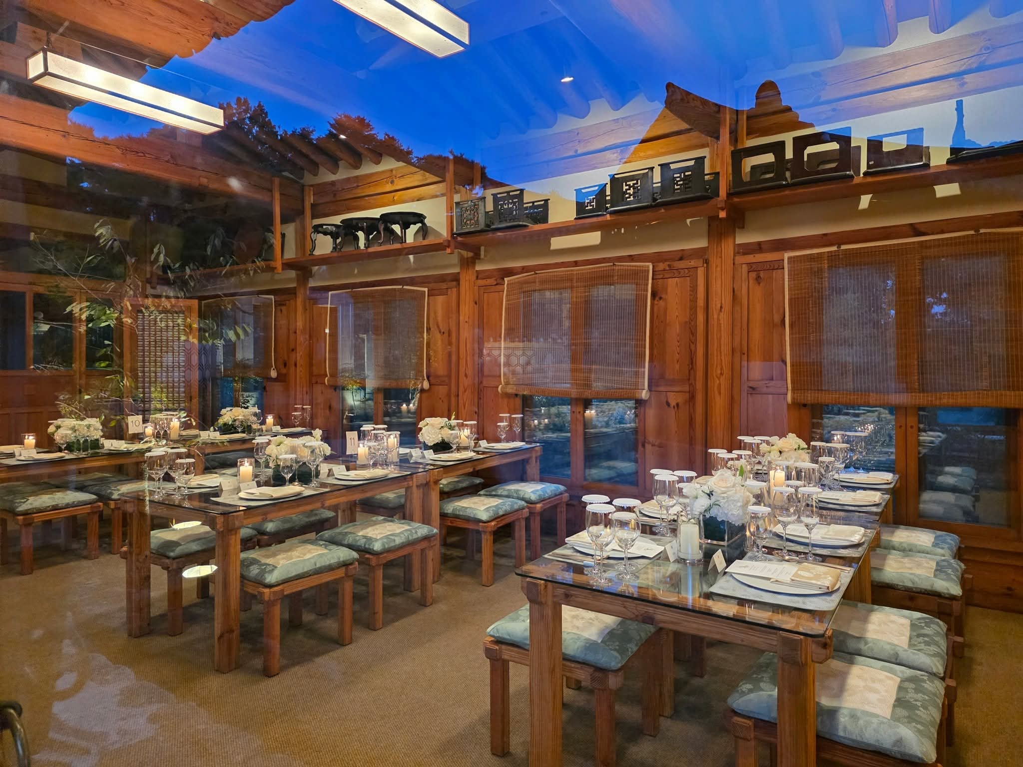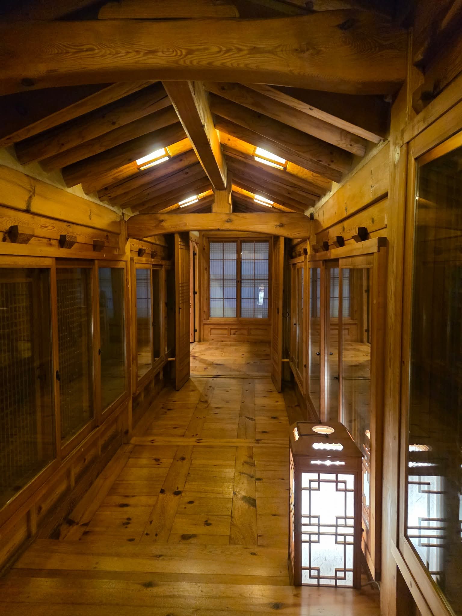 한옥 지붕 위로 스며드는 마지막 빛이 유리창을 타고 흘러내렸습니다.