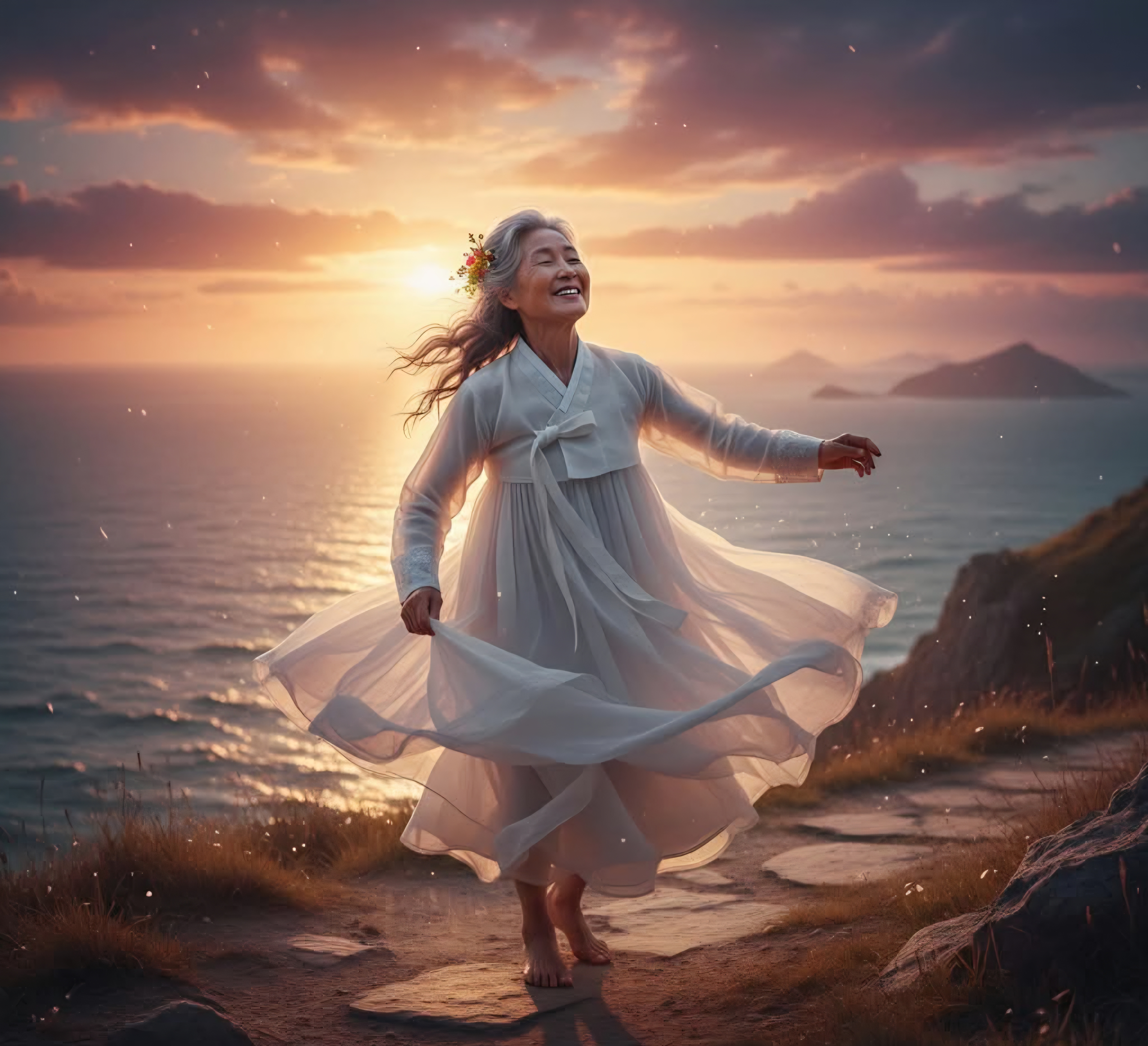 보이지 않는 거대한 세계가, 우주가, 그녀를 따뜻하게 안아주었습니다.