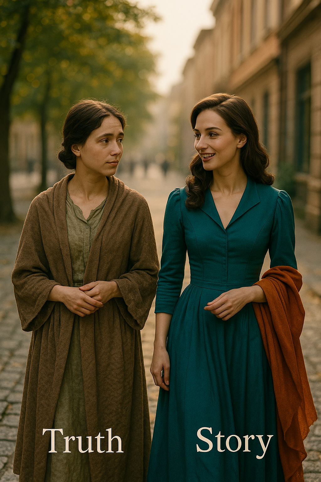그날 이후부터 진실과 스토리는 함께 다녔으며, 사람들은 그들을 매우 좋아하게 되었다.