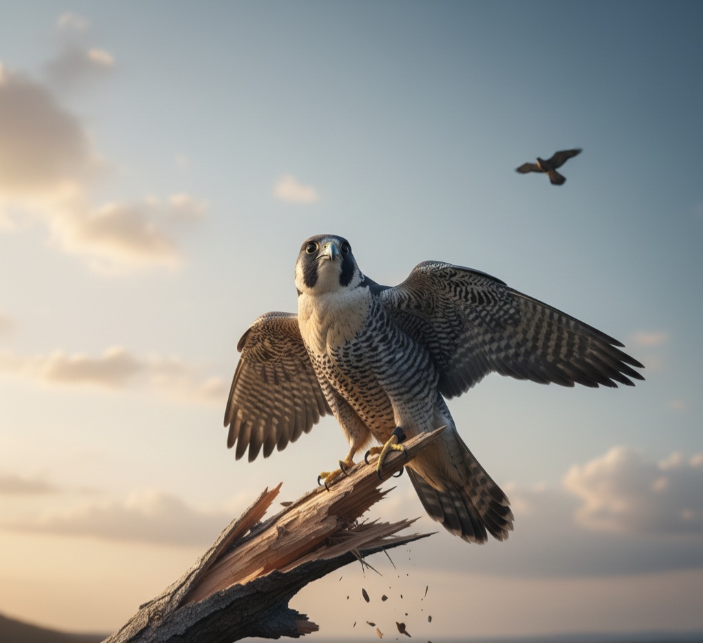 그 매가 하늘을 향해 장엄하게 날고 있었다.
