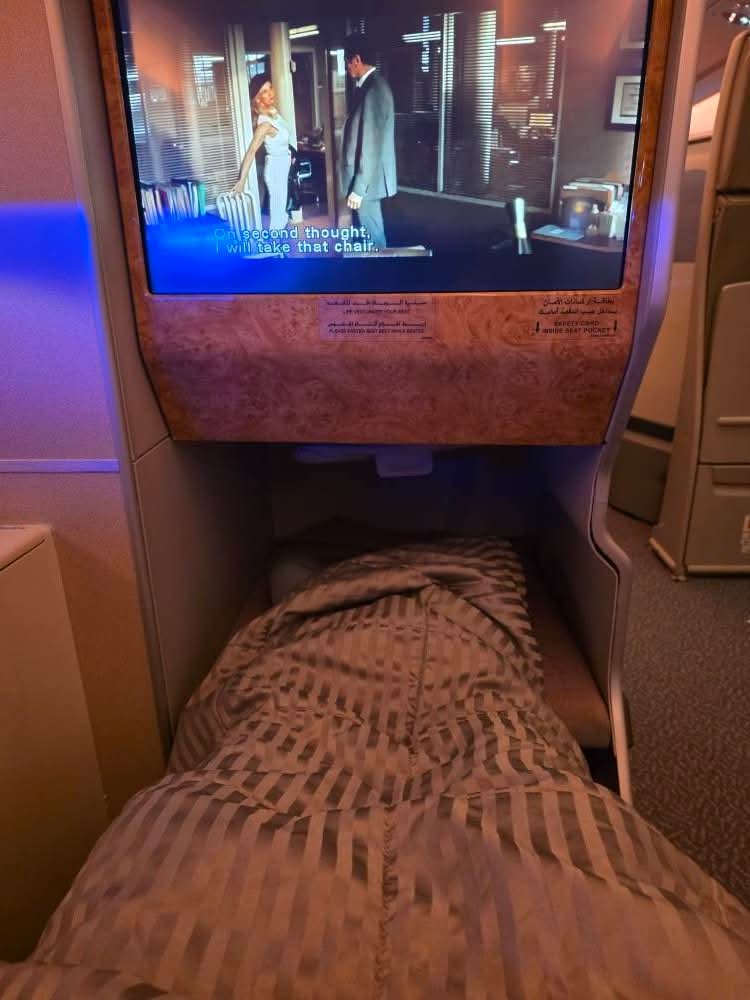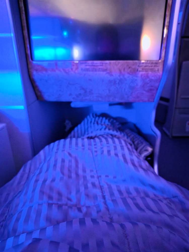 비행 내내 누워서 지냈다.