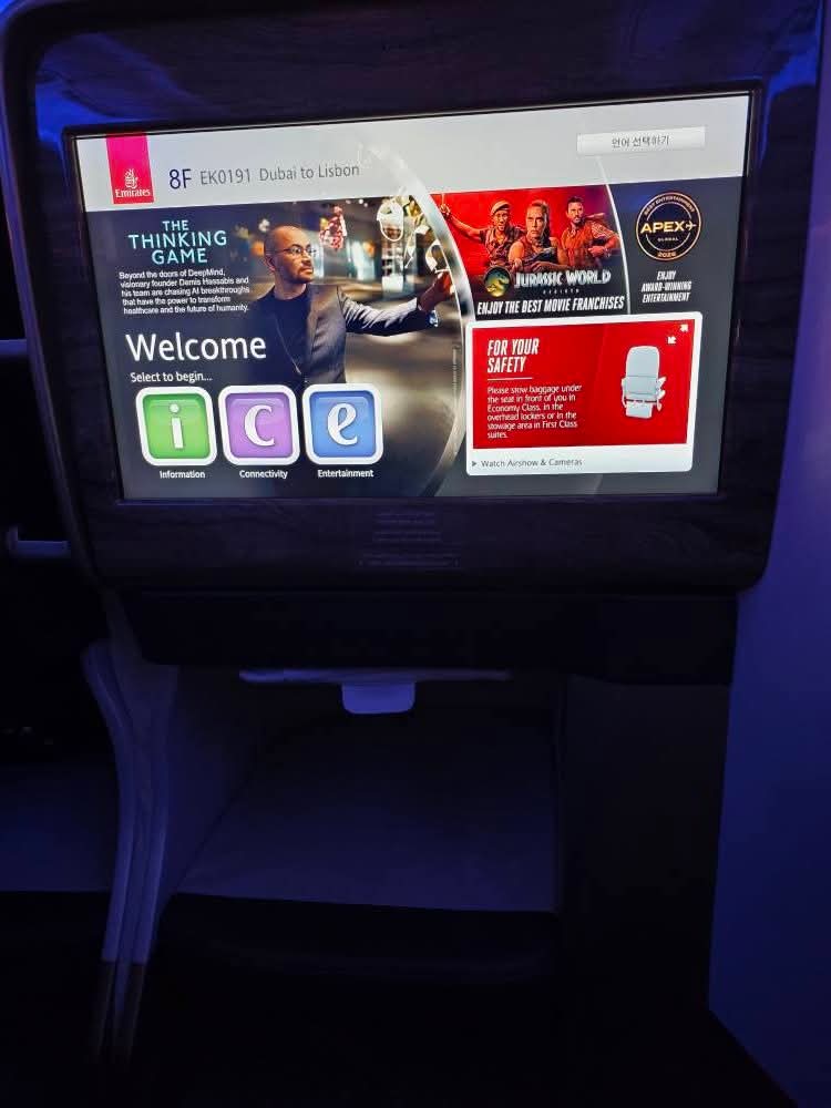 이번 항공편 역시 에미레이트항공의 비즈니스석.