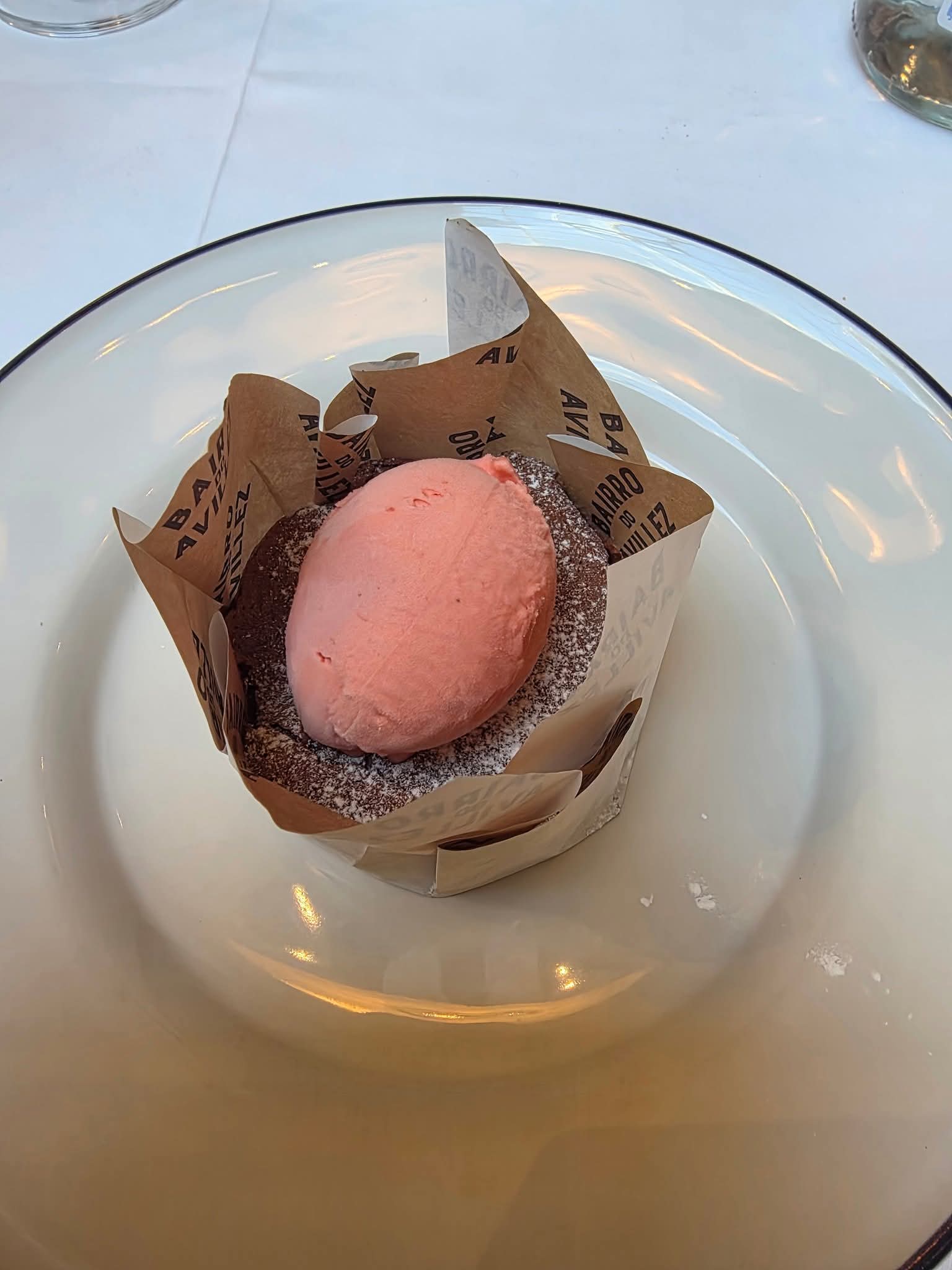 마지막으로 딸기 셔벗을 올린 초콜릿 케이크가 나왔을 때, 긴 점심 식사는 절정을 맞았다.