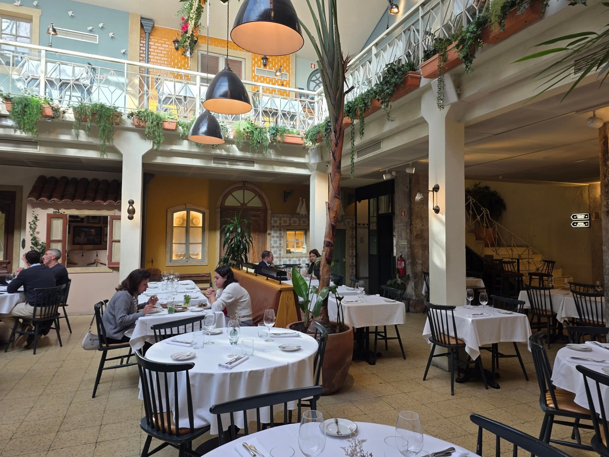 【포르투갈 여행(14). 바이후 두 아빌레즈(Bairro do Avillez)에서의 햇살이 머무는 식탁.】《천장을 통과한 빛과 와인의 한 모금.》〔윤경 변호사 더리드(The Lead) 법률사무소〕