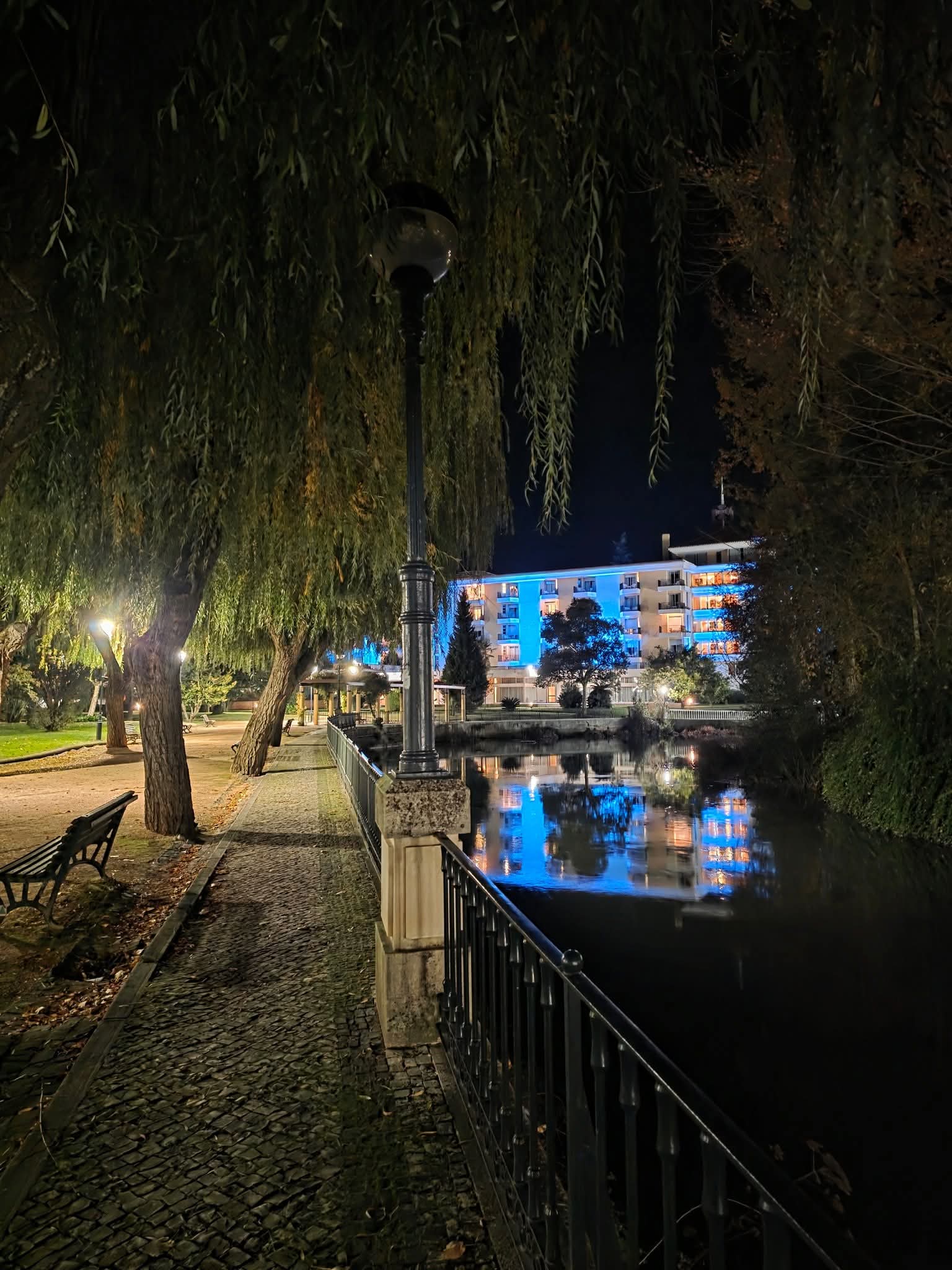 어둠이 내려앉은 언덕 위, 황금빛 조명을 입은 ‘크리스투(그리스도) 수도원(Convento de Cristo)’과 ‘투마르 성 (Castelo de Tomar)’이 고요하고도 위엄 있게 나를 내려다보고 있다.