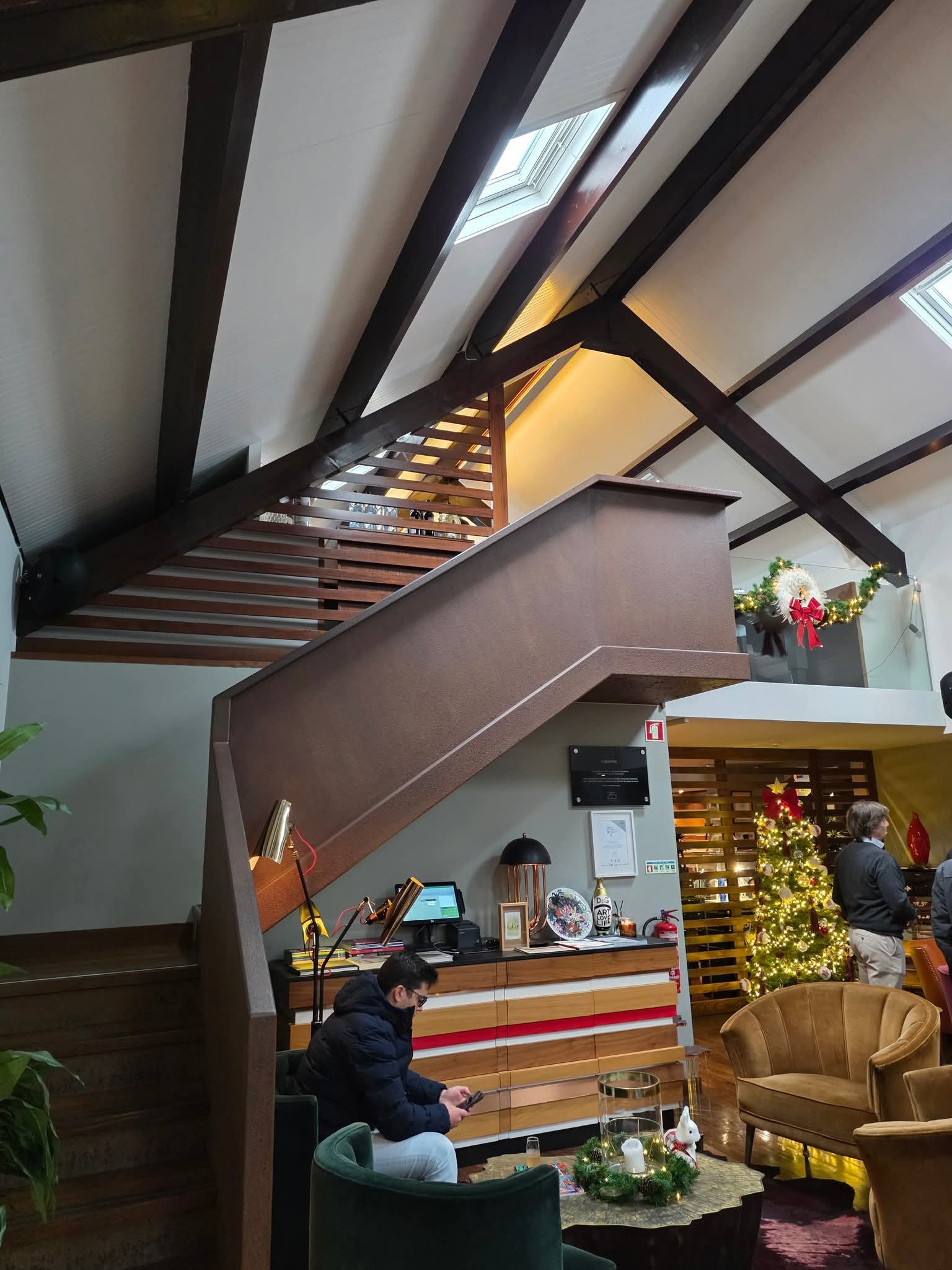 하지만 내부는 높은 천장의 목조 구조물(서까래)과 현대적인 인테리어가 어우러져 웅장하고 세련된 반전 매력을 준다.
