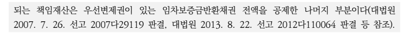 이에 관하여는 판례의 태도가 확립되어 있음(우선변제권 있는 임차보증금반환채무 전액 공제) (대법원 2013. 8. 22. 선고 2012다110064 판결, 대법원 2017. 5. 30. 선고 2017다205073 판결)