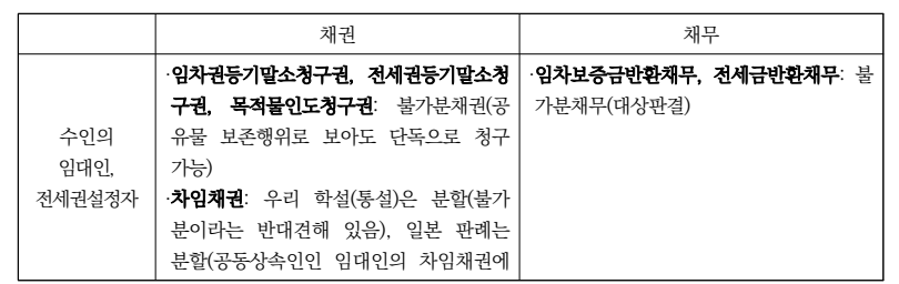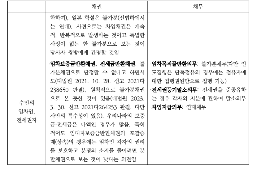 ㈏ 임대인 지위를 공동으로 승계한 공동임대인의 임차보증금반환채무가 불가분채무라는 판례(대법원 2021. 1. 28. 선고 2015다59801 판결, 대법원 2024. 8. 1. 선고 2023다318857 판결)