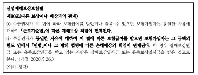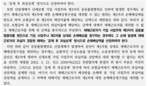 ⑵ 사업주를 상대로 한 손해배상청구에는 종전대로 과실상계 후 공제설을 유지하여야 하는 것 아닌가 하는 의문이 들 수 있음