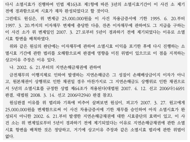 ⑸ 대상판결에서는 제1, 2 차용금의 ‘이자채권’의 소멸시효가 완성되었는지만 다투어짐