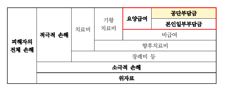 ㈏ ‘진료비 해당액’: 피해자의 과실을 공제하지 않은 치료비(적극적 손해)로서 특별한 사정이 없는 한 요양급여비용(= 공단부담금 + 본인부담금)과 동일한 금액임