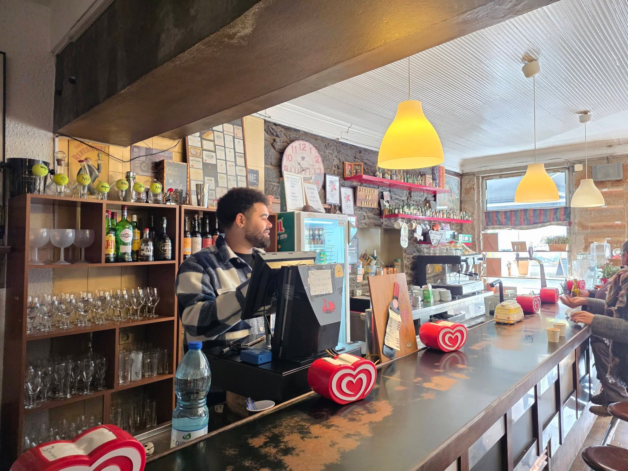 역 건너편, 정감이 느껴지는 작은 카페에 들러 커피 한 잔을 받아 들고 창가에 앉았다.
