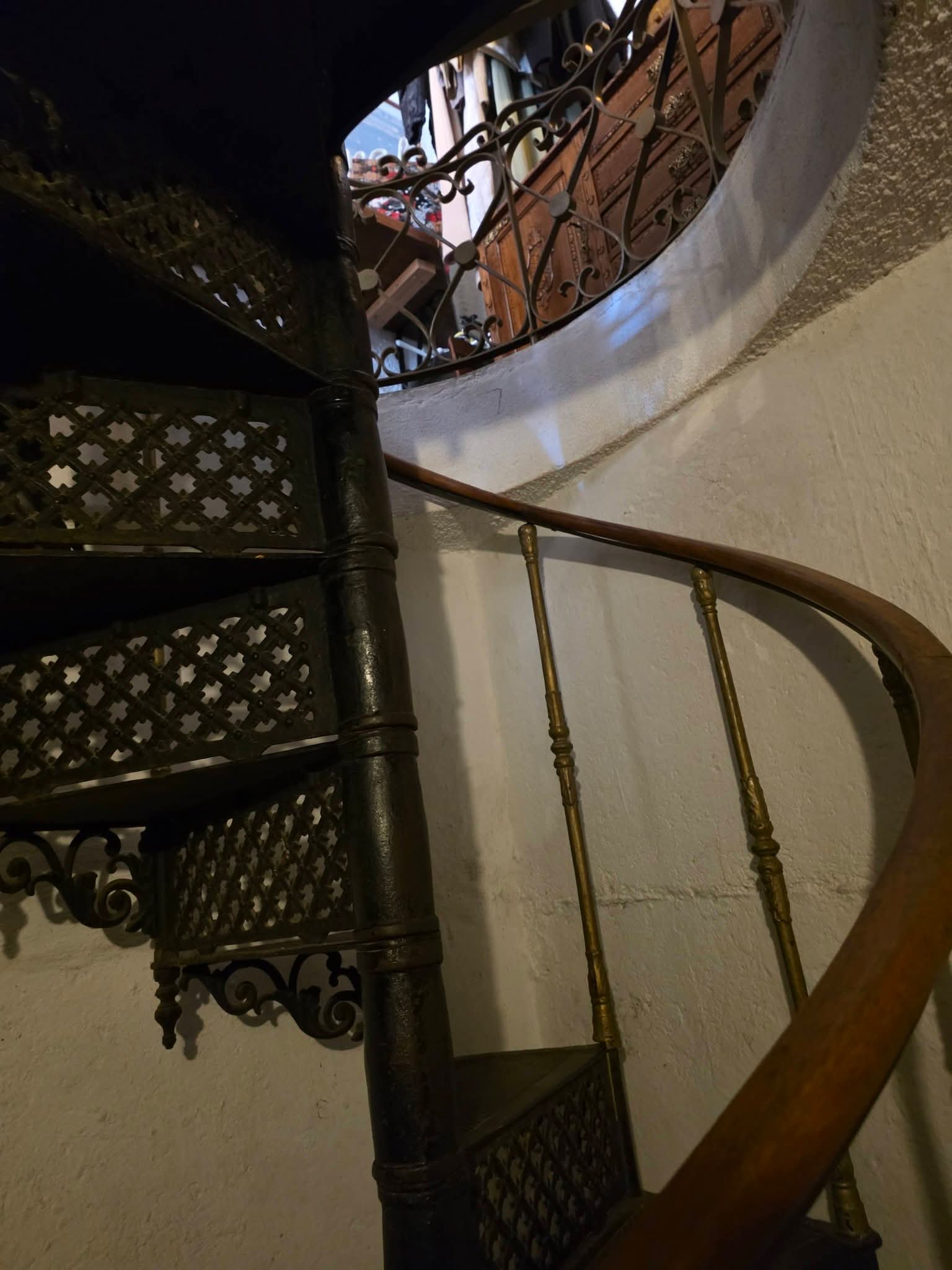 화장실로 향하는 지하 통로의 좁고 둥근 철제 계단을 내려가며, 이 건물이 견뎌온 묵직한 세월의 깊이를 가늠해 본다.