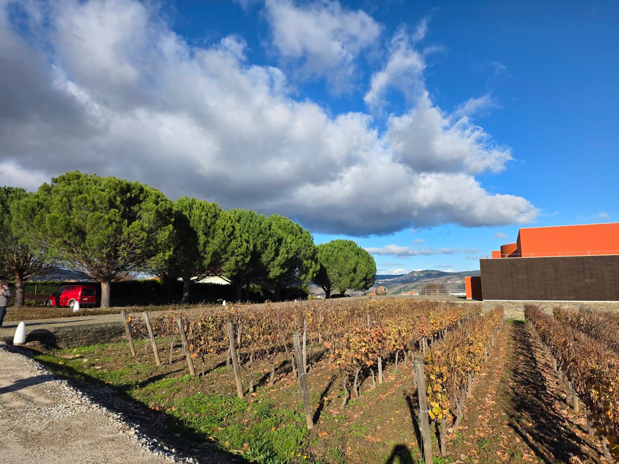 붉은색과 검은색이 강렬하게 대비되는 건물은 마치 포도밭 사이에 조용히 내려앉은 현대 조각품 같았다.
