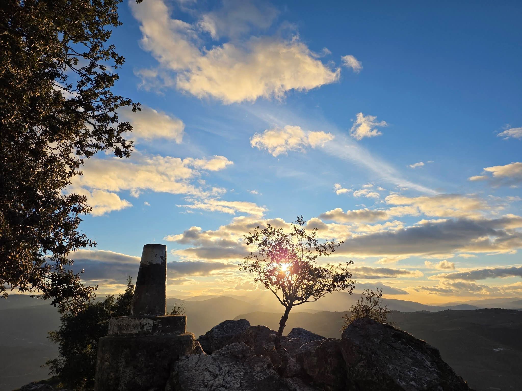 바위 곁에 홀로 선 나무 한 그루는 지는 석양을 온몸으로 받아내며 한 폭의 그림이 되어주었다.
