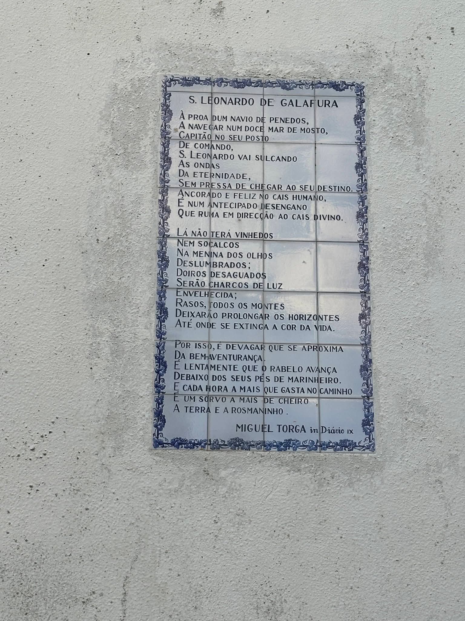 예배당 벽면의 푸른 타일(아줄레주)에는 포르투갈의 거장 작가 ‘미구엘 토르가(Miguel Torga)’의 시가 새겨져 있다.