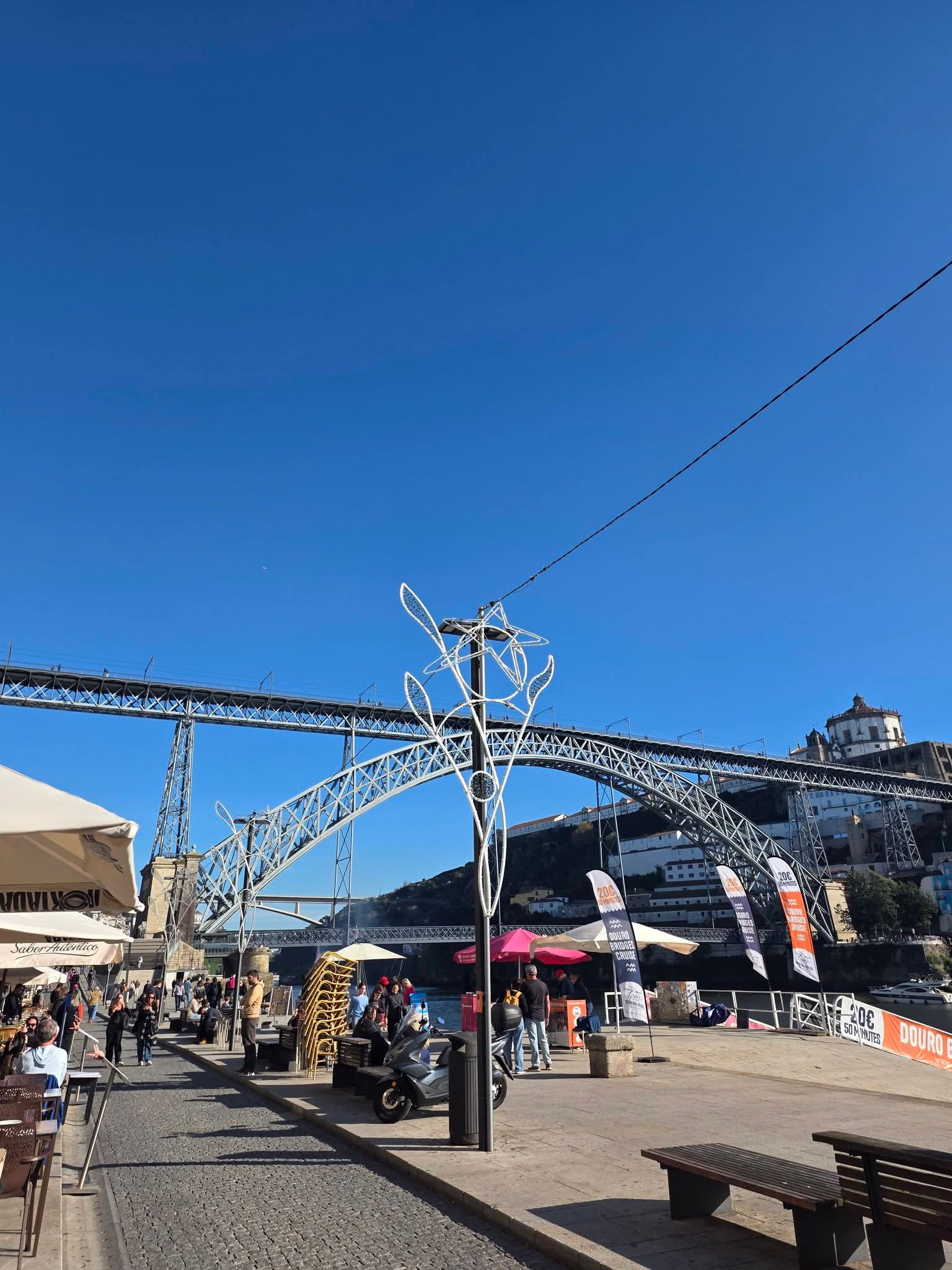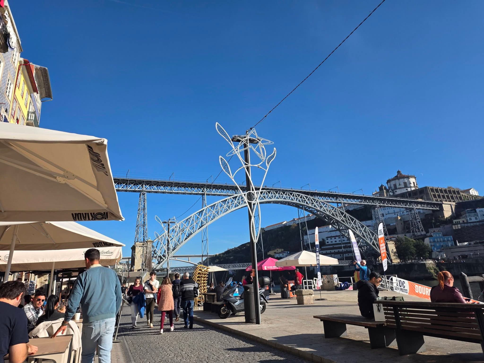 고개를 들면 거대한 철제 구조물인 동 루이스 1세 다리가 강을 가로지르며 웅장하게 서 있다.