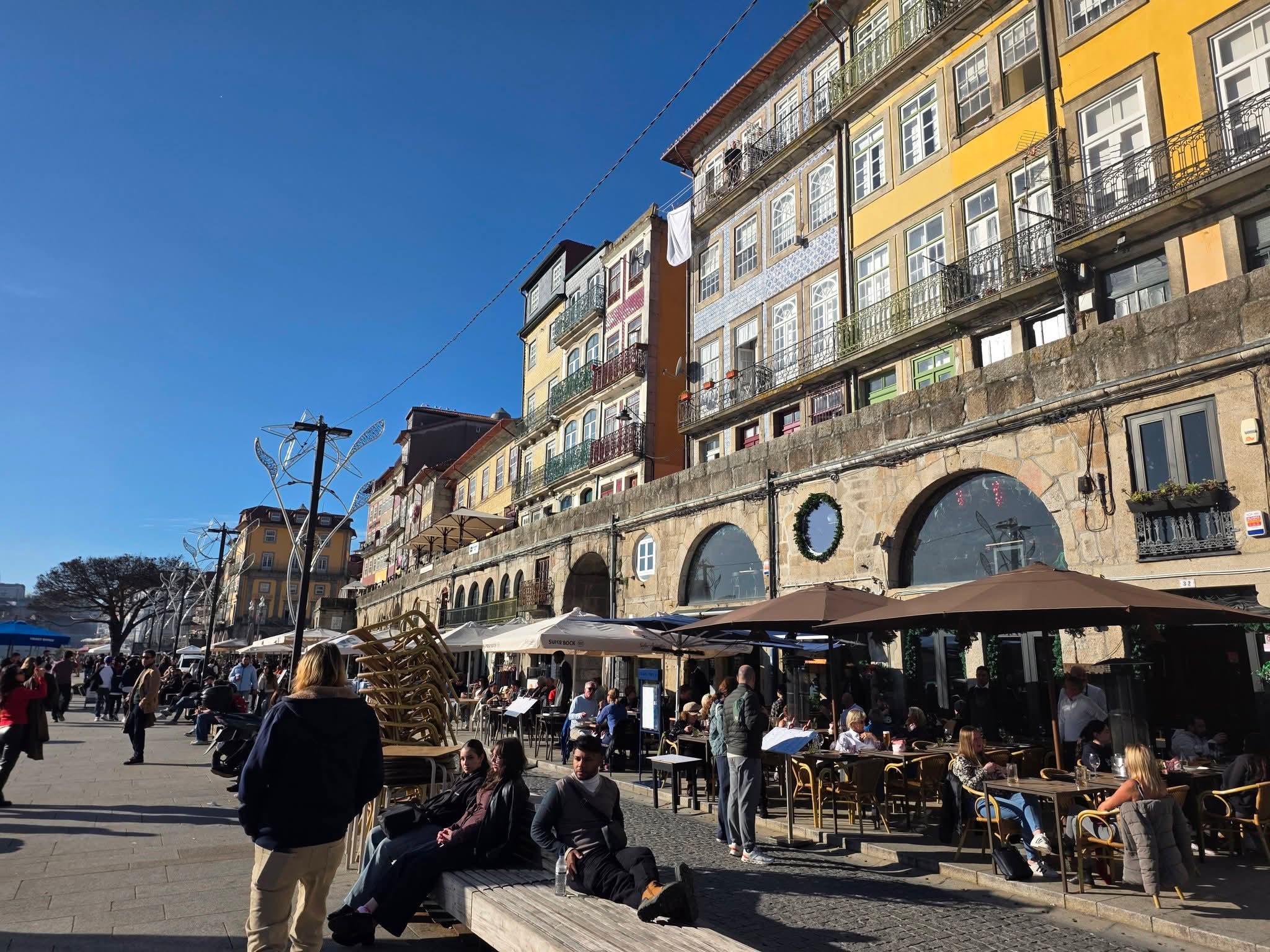 눈이 시릴 정도로 화창한 날씨 덕분에 히베이라 광장은 생동감으로 가득하다.