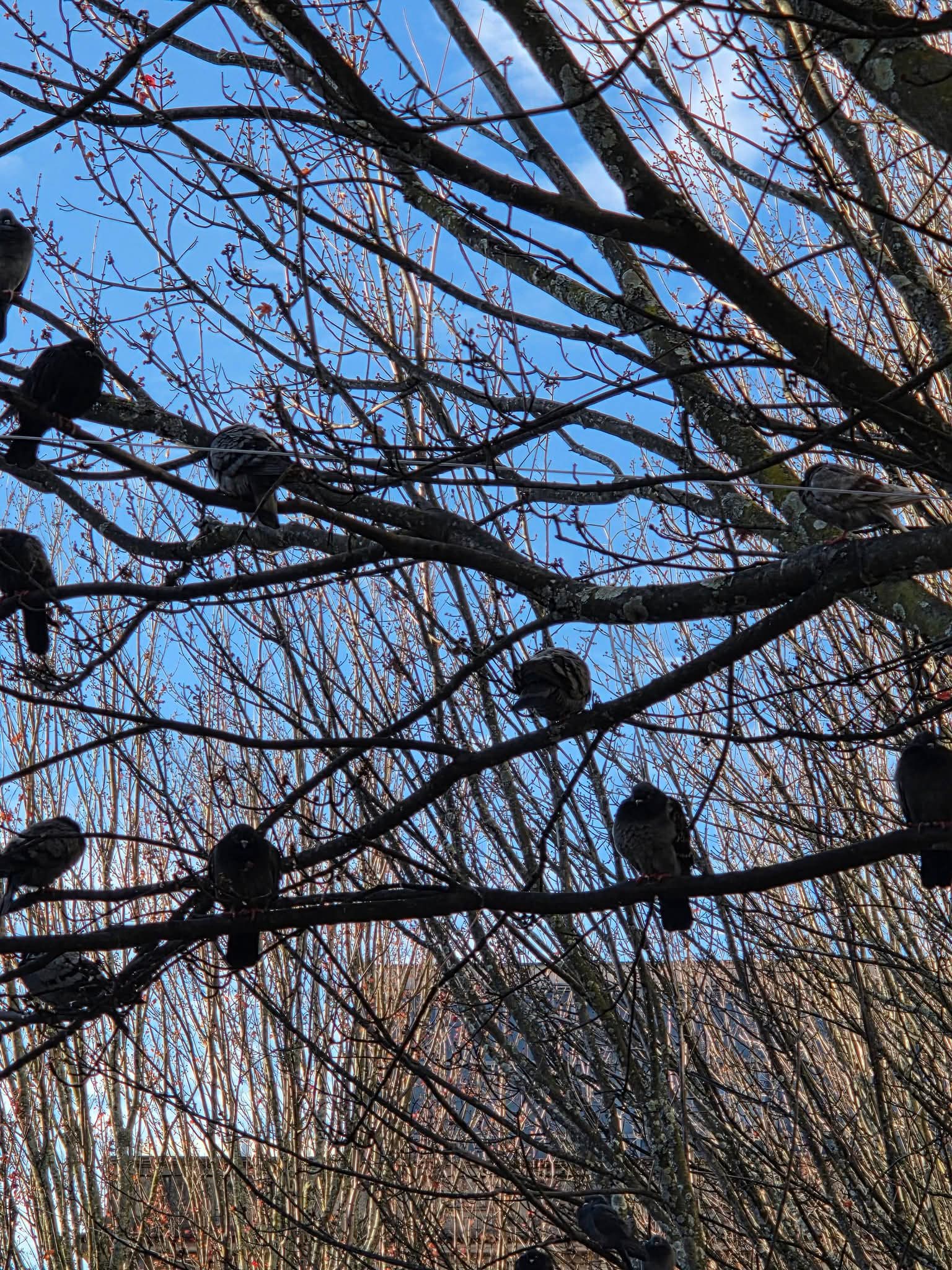 걷다 보니 가로수 위에 비둘기가 앉아 있는데 전혀 움직이지 않고 있어서 깜짝 놀랐다.