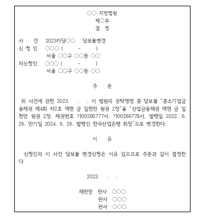 예컨대, “중소기업금융채권 제○회 ○호 액면 ○○원권 ○○장” 등과 같다.