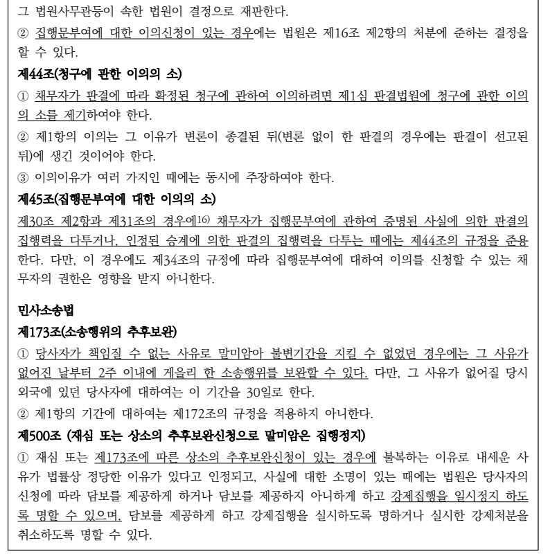 ● 민사집행법 제49조(집행의 필수적 정지ㆍ제한)